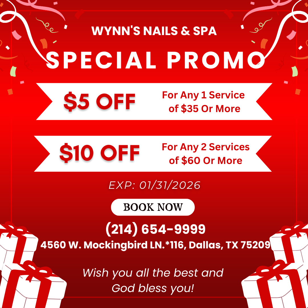 Are you looking for a reliable nail salon to perform nail and spa services? Look no further, Wynn's Nails & Spa is the ideal location. Visit us at 4560 W. Mockingbird LN.*116, Dallas, TX 75209, for beauty treatments and find yourself looking even more beautiful with a stylish look!